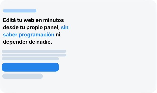 Creamos sitios profesionales que puedes gestionar tú mismo. Cambia textos, fotos y precios en segundos, sin tocar una sola línea de código.